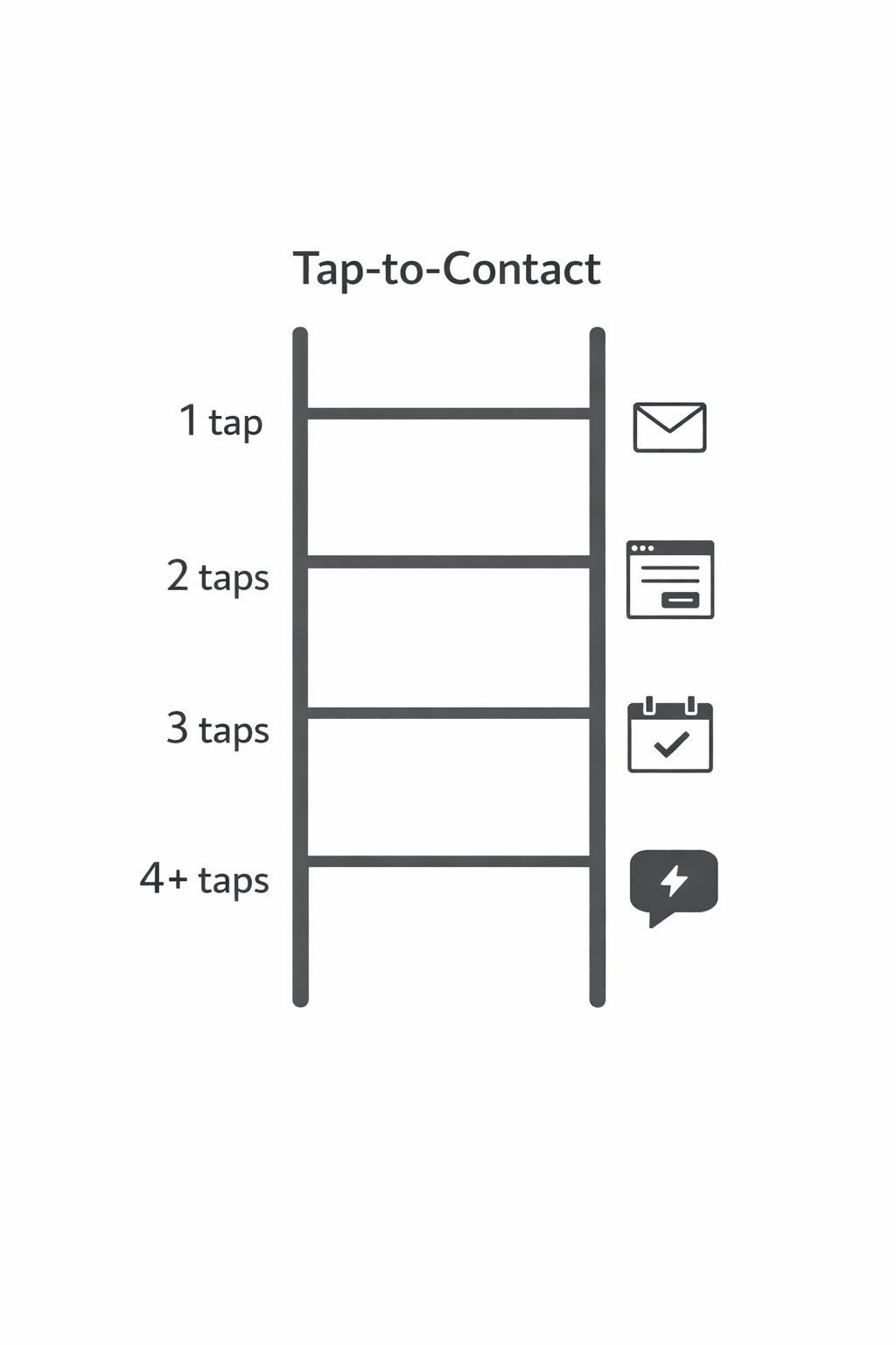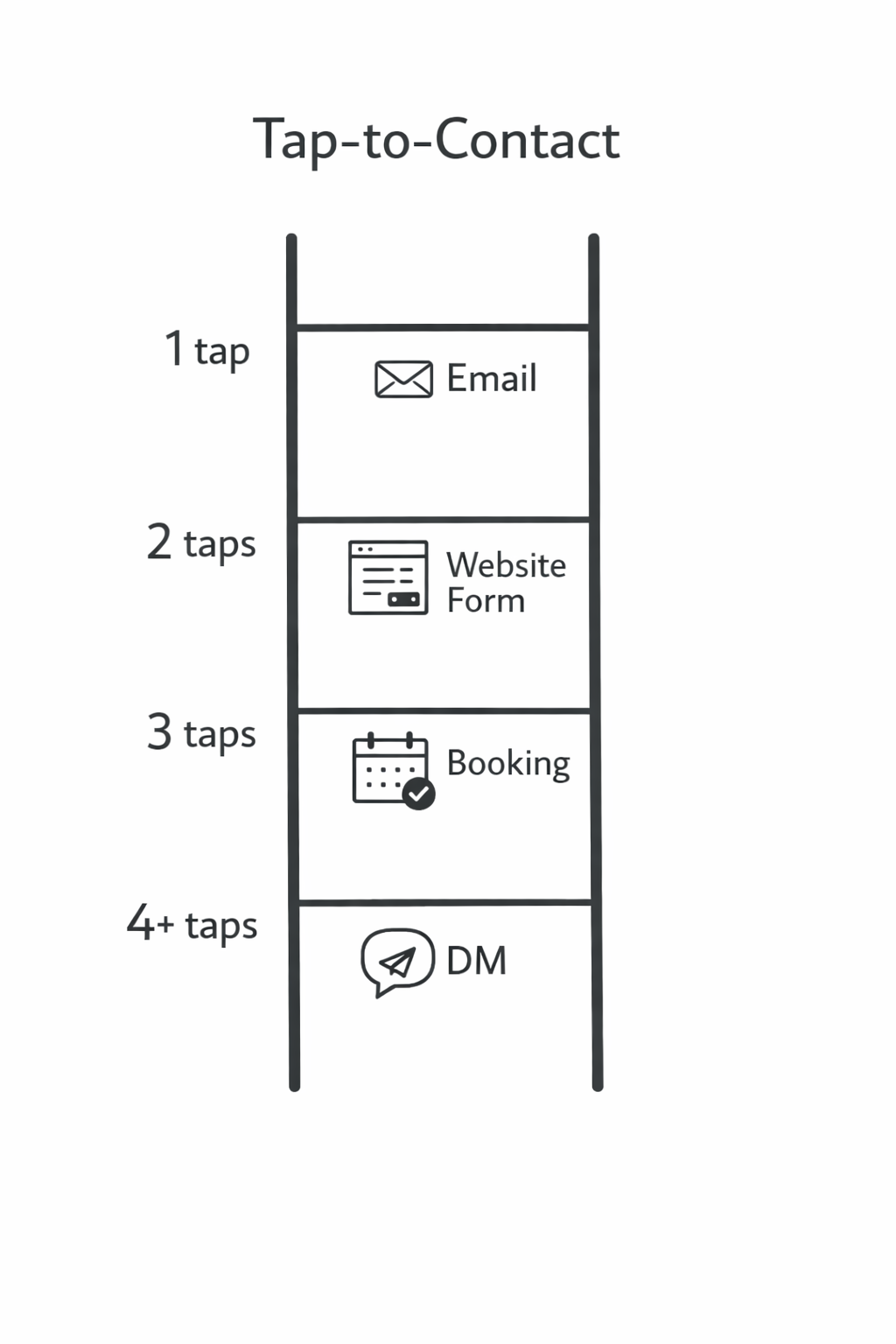 Tap-to-Contact Metric: Measure the number of taps required to send a message that reaches somewhere intentional (inbox, form, booking).