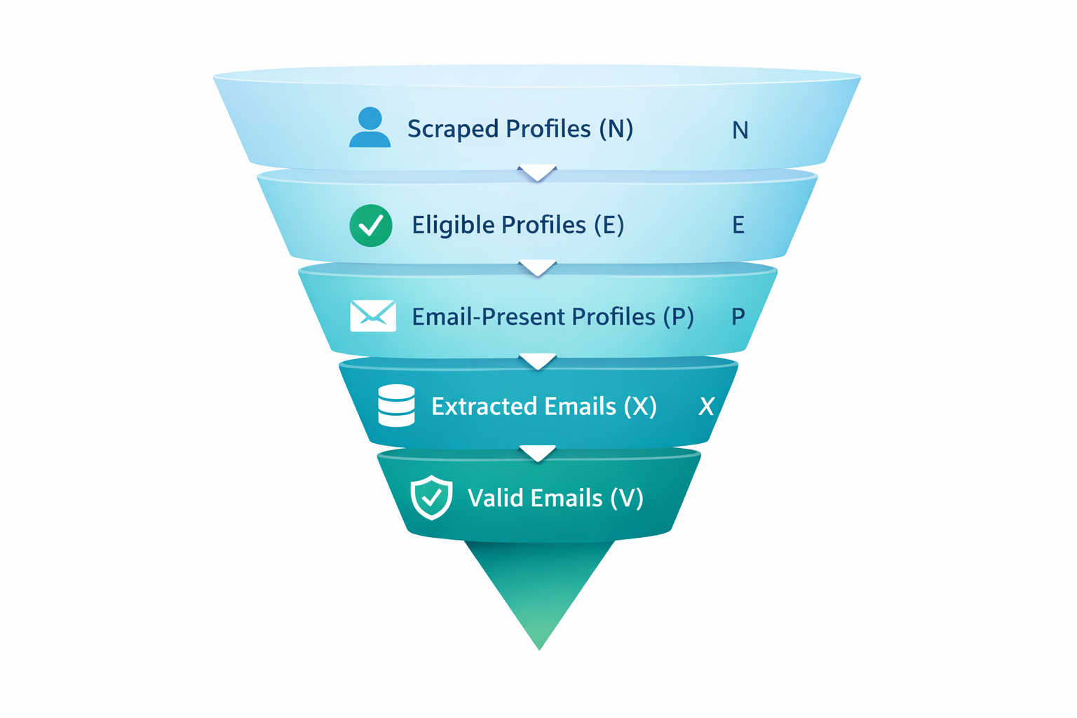 - Match rate -- how efficiently you use your workflow to convert "eligible profiles" into extracted emails