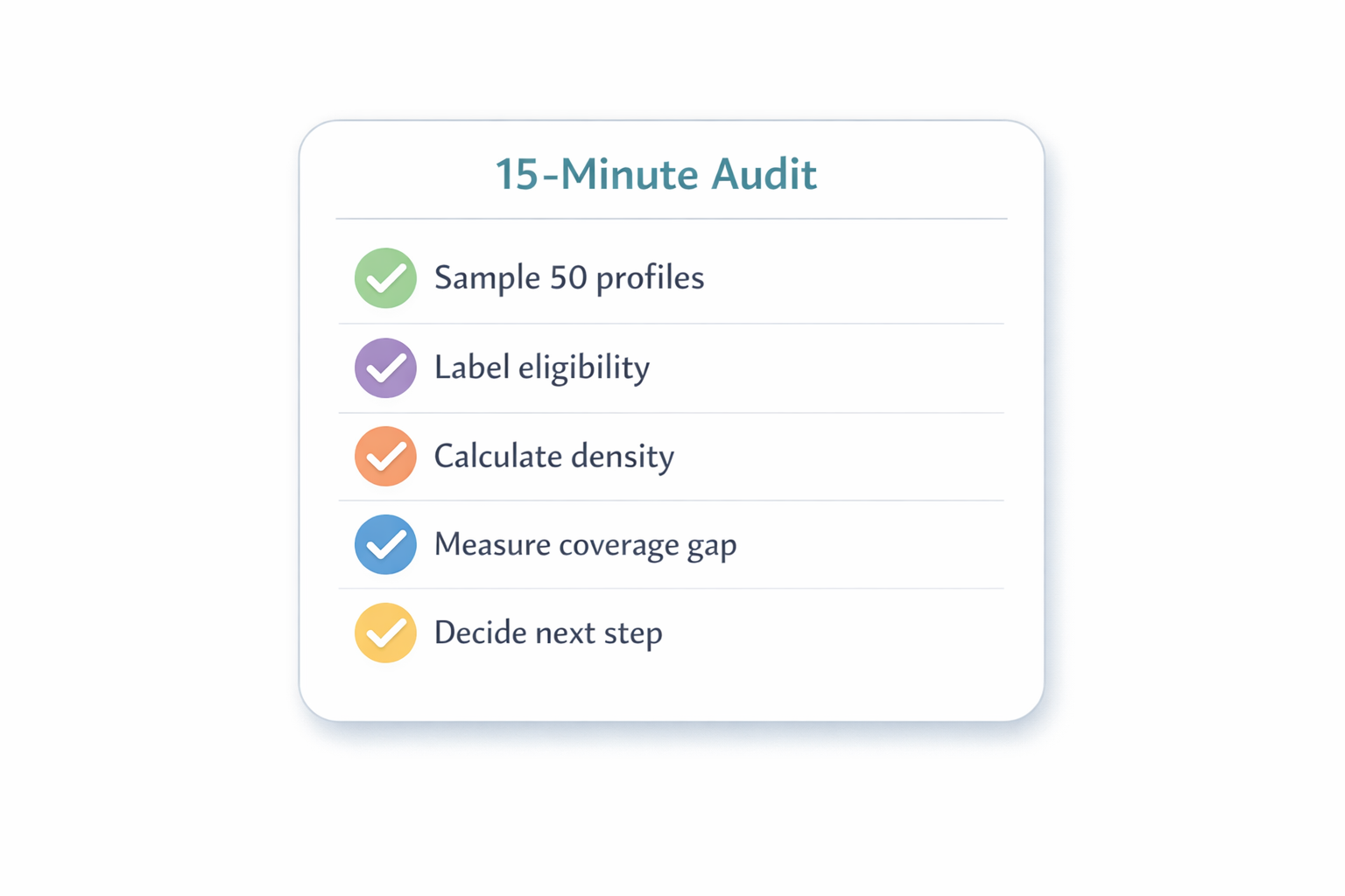 - Density < 5%: Stop scaling. Change niche or change profile sourcing.