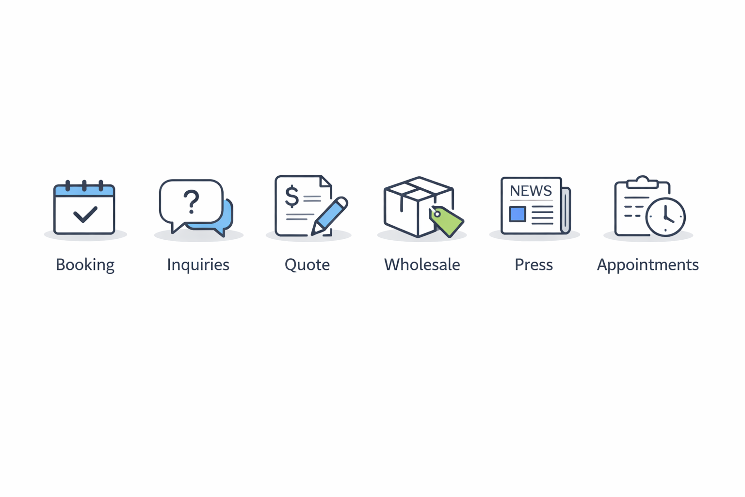 "requests," "orders," "quotes," "appointments," "availability"