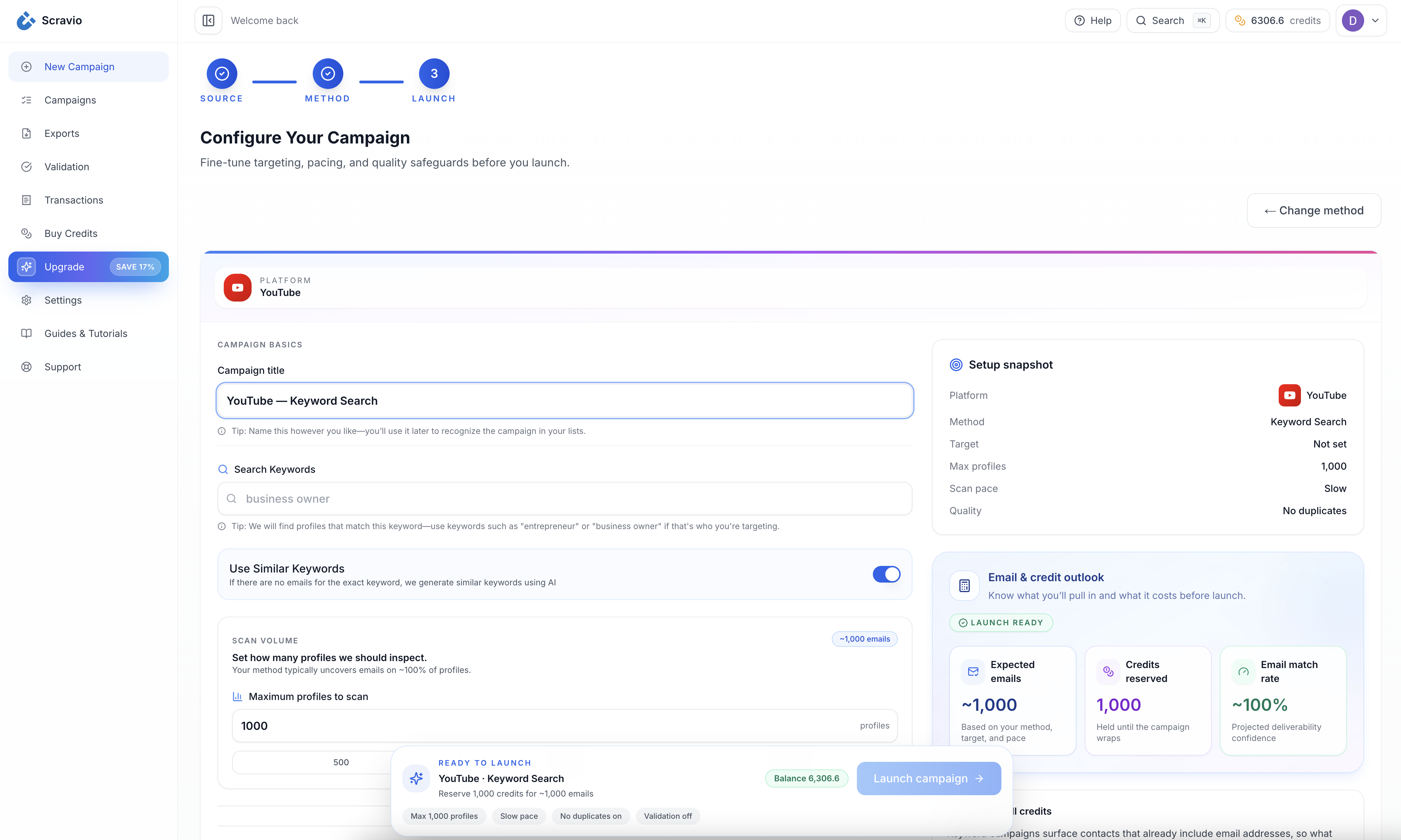 Set a target count and let Scravio handle the heavy lifting.